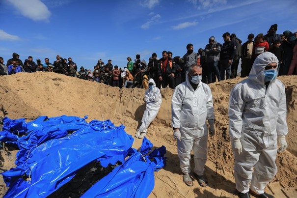 Préparation d’une fosse commune à Rafah, dans le sud de la bande de Gaza. Photo : Mohammed Talatene/DPA via ZUMA Press