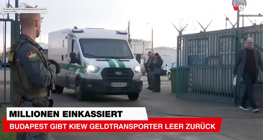 L’affaire a récemment pris une dimension paneuropéenne lorsqu’un convoi de deux camions blindés a été intercepté en Hongrie et que les sept hommes de l’escorte ont été arrêtés (26). Ces deux camions blindés appartiennent à la Banque d’épargne d’État d’Ukraine, Oschadbank . Ils provenaient d’Autriche et devaient poursuivre leur route vers la Serbie ou le Monténégro en passant par la Hongrie. Quarante millions de dollars, 35 millions d’euros et 9 kilogrammes de lingots d’or ont été saisis à bord. Selon Zelensky, cet argent était destiné à payer les avions de chasse Rafale commandés à la France. Le gouvernement hongrois serait au courant de la provenance douteuse de cet argent et ferait pression sur Zelensky pour qu’il lève le blocus des oléoducs et gazoducs ou qu’il se prépare à ce que la provenance des fonds soit révélée.