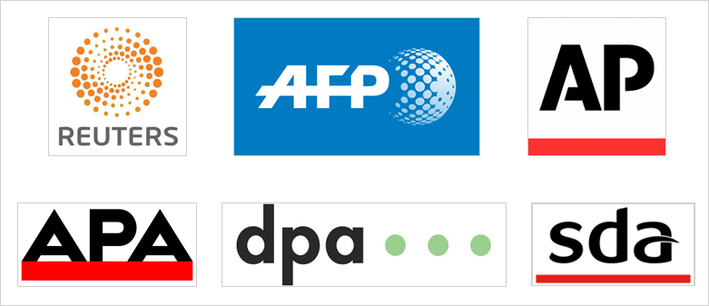 Les trois agences de presse mondiales Reuters, AFP et AP, et les trois agences nationales des pays germanophones d’Autriche (APA), d’Allemagne (DPA) et de Suisse (SDA).