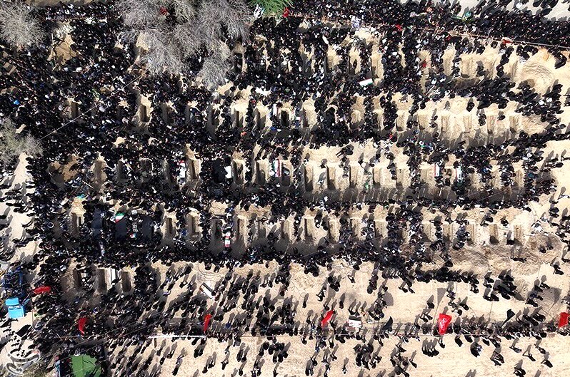 Funérailles des élèves de l’école primaire de filles de Minab, en Iran, tuées lors du bombardement américano-israélien du 28 février. (Agence de presse Tasnim / Wikimedia Commons / CC BY 4.0)